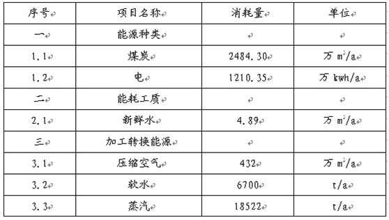 项目生产用蒸汽、压缩空气和软水均有企业自行加工转换后自用,年消耗蒸汽18522t,压缩空气432万m3,软水6700t。