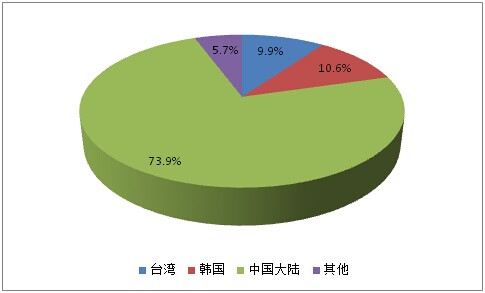 图表 3:2012年全球新增mocvd设备销售地区分布示意图