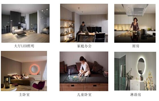 本项目产品主要通过利用德国某公司先进技术,进行led室内照明产品及灯饰配件、控制系统及部分创意产品生产,主要包括:led光源系列、led天花灯系列、led吸顶灯系列、led壁灯系列、led筒灯系列等,主要用于大厅、厨房、卧室、餐厅、书房等室内空间的照明,根据各空间的不同功能提供合适/舒适的光照环境。该公司产品具有体积小、耗电量低、使用寿命长、高亮度、低热量、环保、坚固耐用、防眩光、无辐射、易控制等特点,非常适合居家照明。