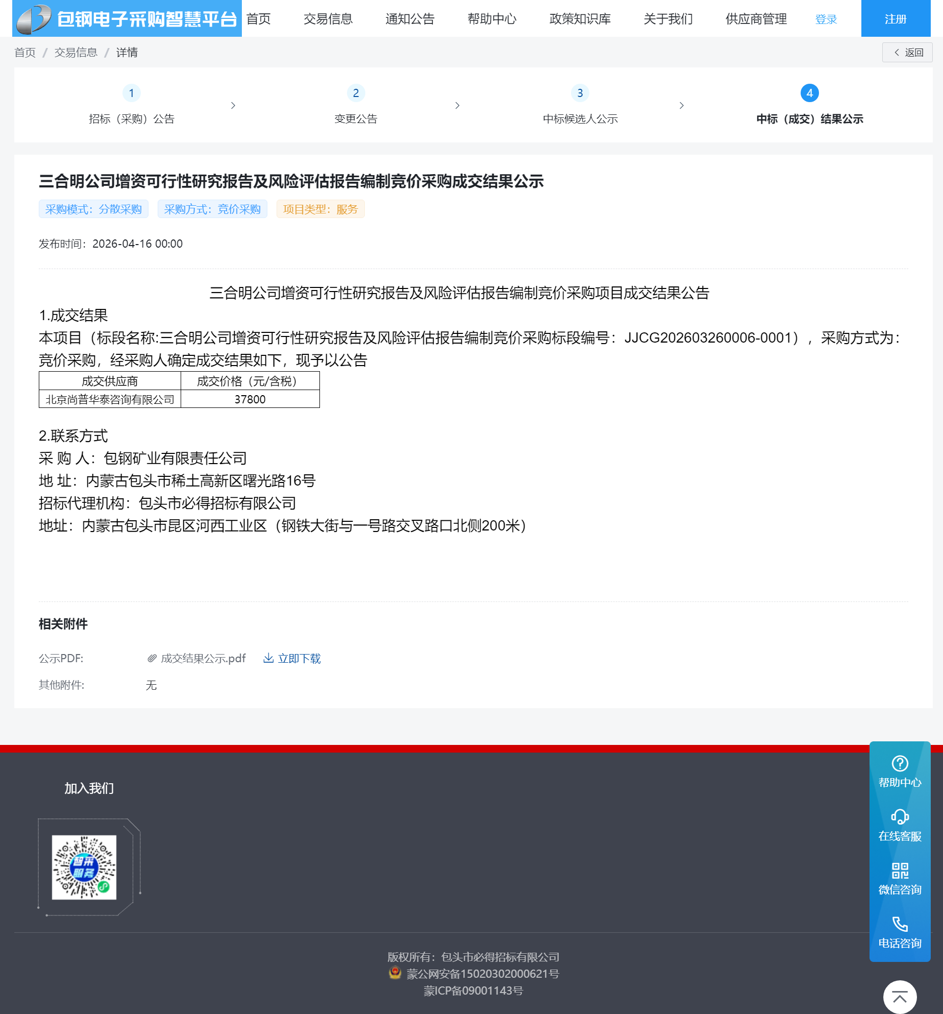 2026-04-17 09:48:05 尚普华泰中标“包钢矿业有限责任公司三合明公司增资可行性研究报告及风险评估报告编制竞价采购项目”